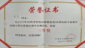 11月21日,晋城大医院内科青年教师袁昊在山西省住培内科专业教学技能大赛小讲课比赛中荣获三等奖。 &nb...